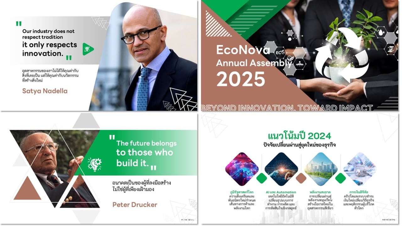 เติมเต็มความสวยงามให้งานนำเสนอด้วยการออกแบบที่มีเอกลักษณ์ และสื่อความหมายได้ตรงใจ สร้างภาพลักษณ์ที่น่าจดจำให้กับทุกงานนำเสนอ ไม่ว่าจะเป็นการประชุมภายใน หรือภายนอกองค์กร